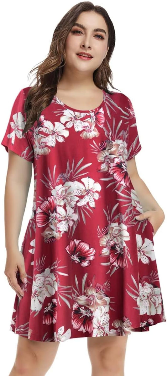 plus Size Dresses for Womens Summer Clothes Casual Floral Tops Short Sleeve T Shirt Dress Swing Sleepwear(A-Winered18 S)Regular price $165.01Regular price $165.01 Sale priceUnit price / per$0.00Sold out