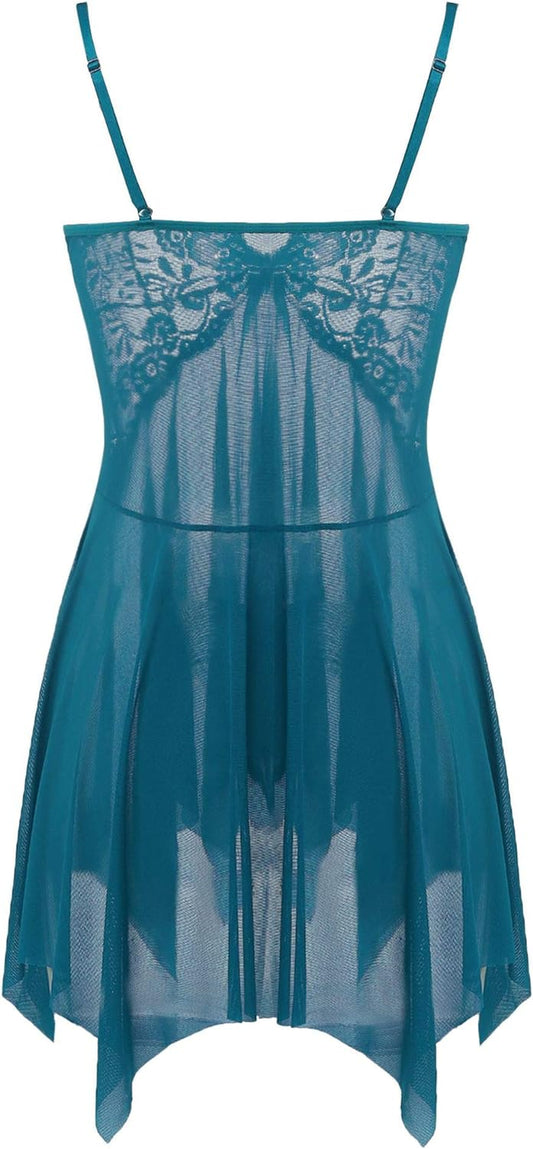 Lingerie for Women Front Closure Babydoll Lace Chemise V Neck Mesh Sleepwear