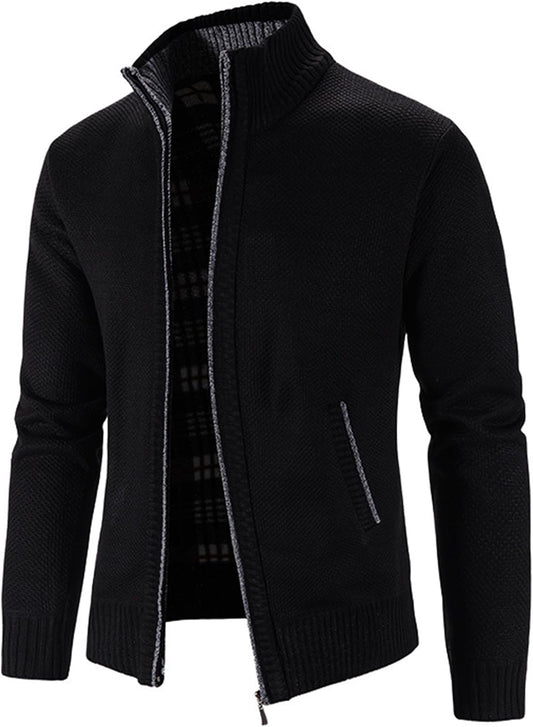 Men'S Casual Full Zip Slim Thick Knitted Cardigan Sweaters with Pockets